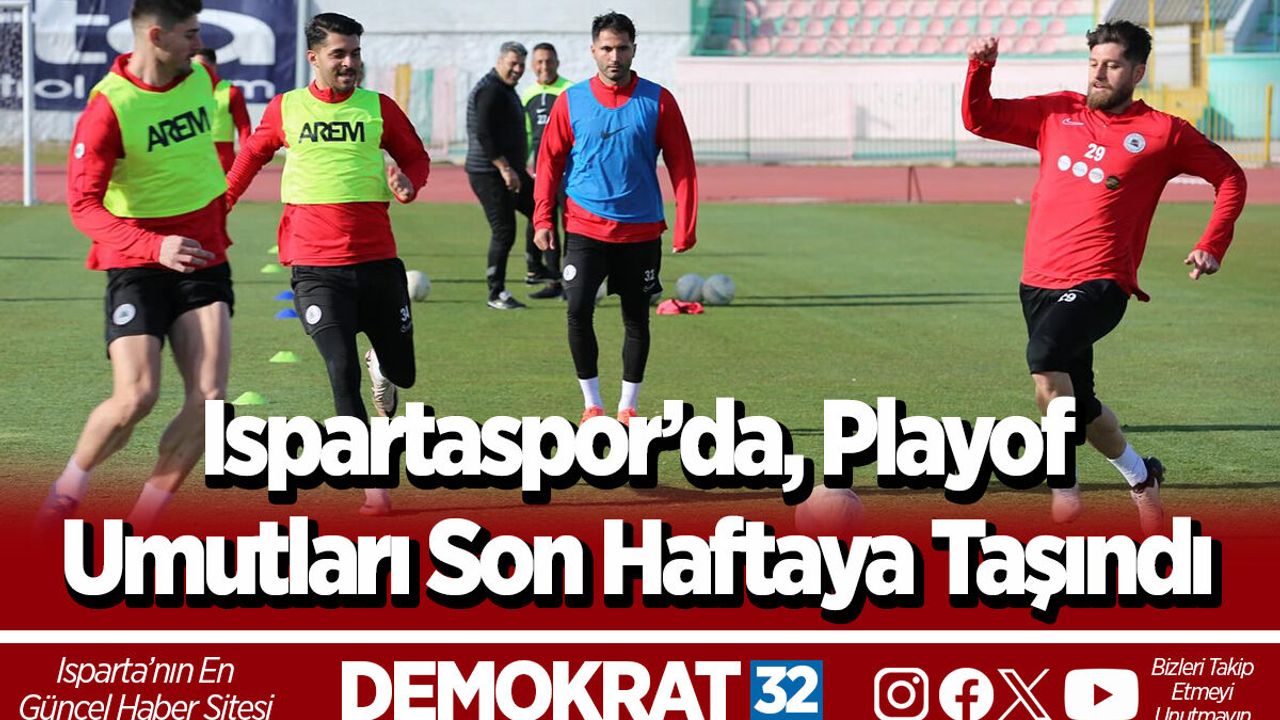 TFF 2. Lig Kırmızı Grup’ta 33. hafta karşılaşmaları tamamlandı. ISBAŞ Isparta 32 Spor, ligden çekilen Yeni Mersin İdmanyurdu Futbol A.Ş’yi hükmen 3-0 mağlup ederek haftayı 3 puanla kapattı. Temsilcimiz Play-Off yolunda önemli bir avantaj elde etti. Temsilcimiz, Play-Off hattında rakibi Kahramanmaraş İstiklalspor’un puan kaybetmesini bekleyecek. Kahramanmaraş yeni haftada Somaspor’a kaybeder, temsilcimiz Isparta Spor’da Arkent Arnavutköy Belediyesi Futbol Spor’u yenerse, Play-Off’a katılacak. Ancak tam tersi bir senaryoda Play-Off umutlarımızda ligle birlikte sona ermiş olacak.