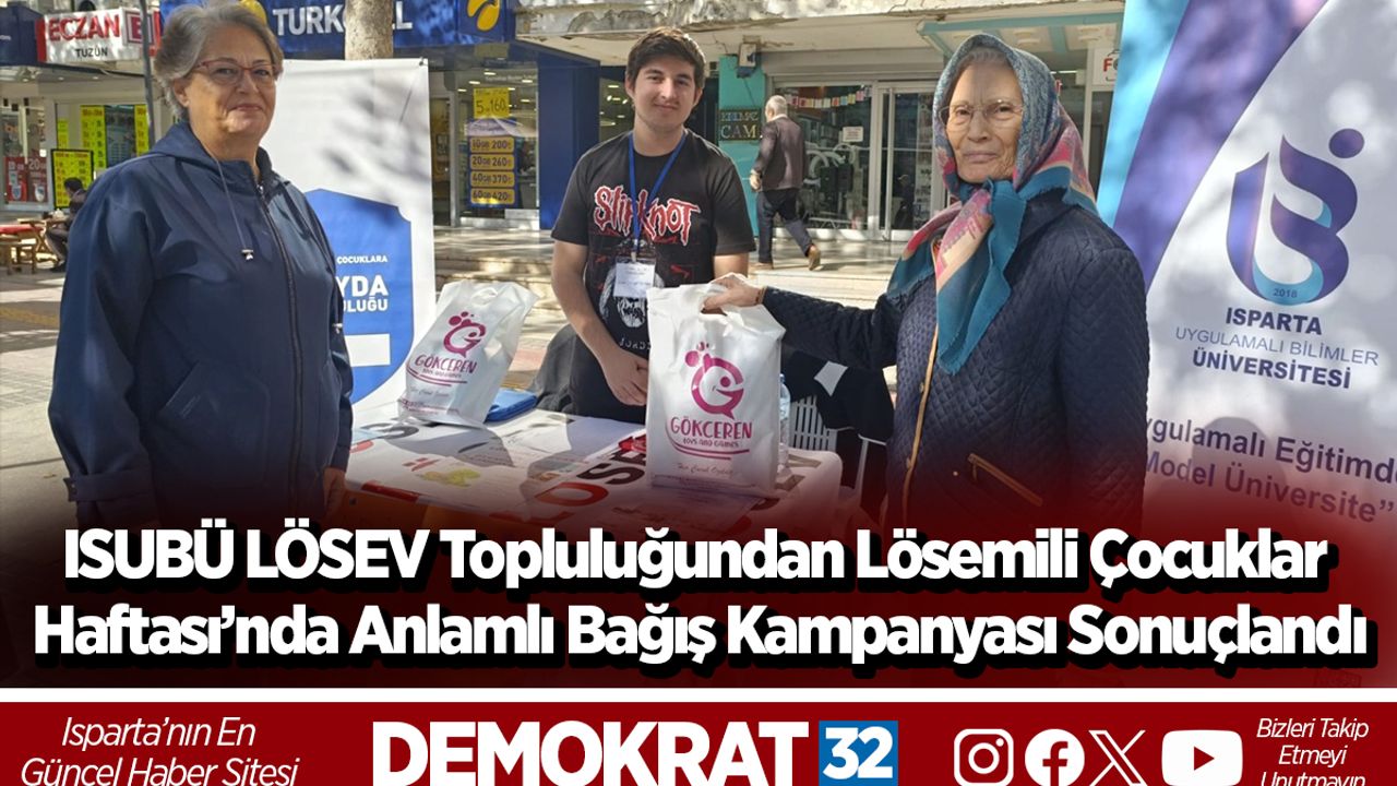 Lösemili Çocuklar Haftası kapsamında, Isparta Uygulamalı Bilimler Üniversitesi (ISUBÜ) LÖSEV Topluluğu tarafından 3–7 Kasım tarihleri arasında anlamlı bir sosyal sorumluluk etkinliği gerçekleştirildi.