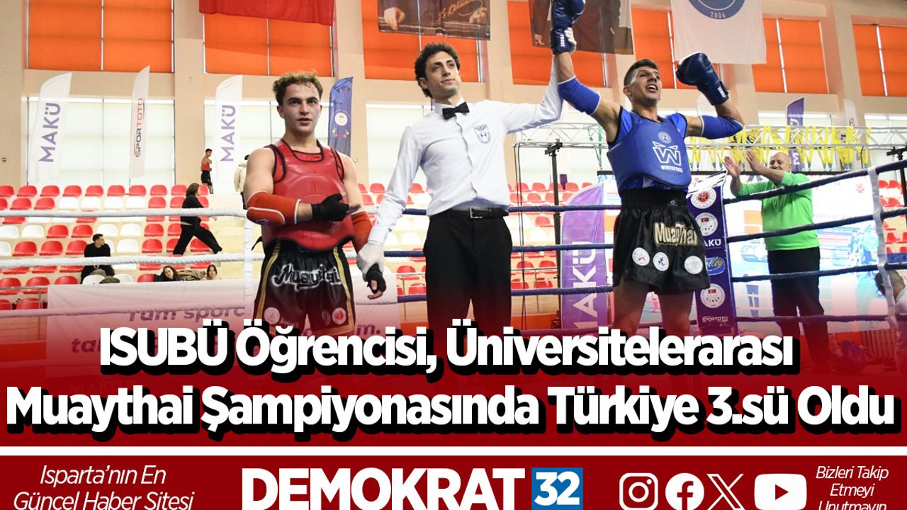 Isparta Uygulamalı Bilimler Üniversitesi Teknik Bilimler Meslek Yüksekokulu Öğrencisi Resul Kum, Burdur Mehmet Akif Ersoy Üniversitesi ev sahipliğinde düzenlenen ÜNİLİG Muay Thai Türkiye Şampiyonası'nda önemli bir başarıya imza atarak Türkiye 3.sü oldu.