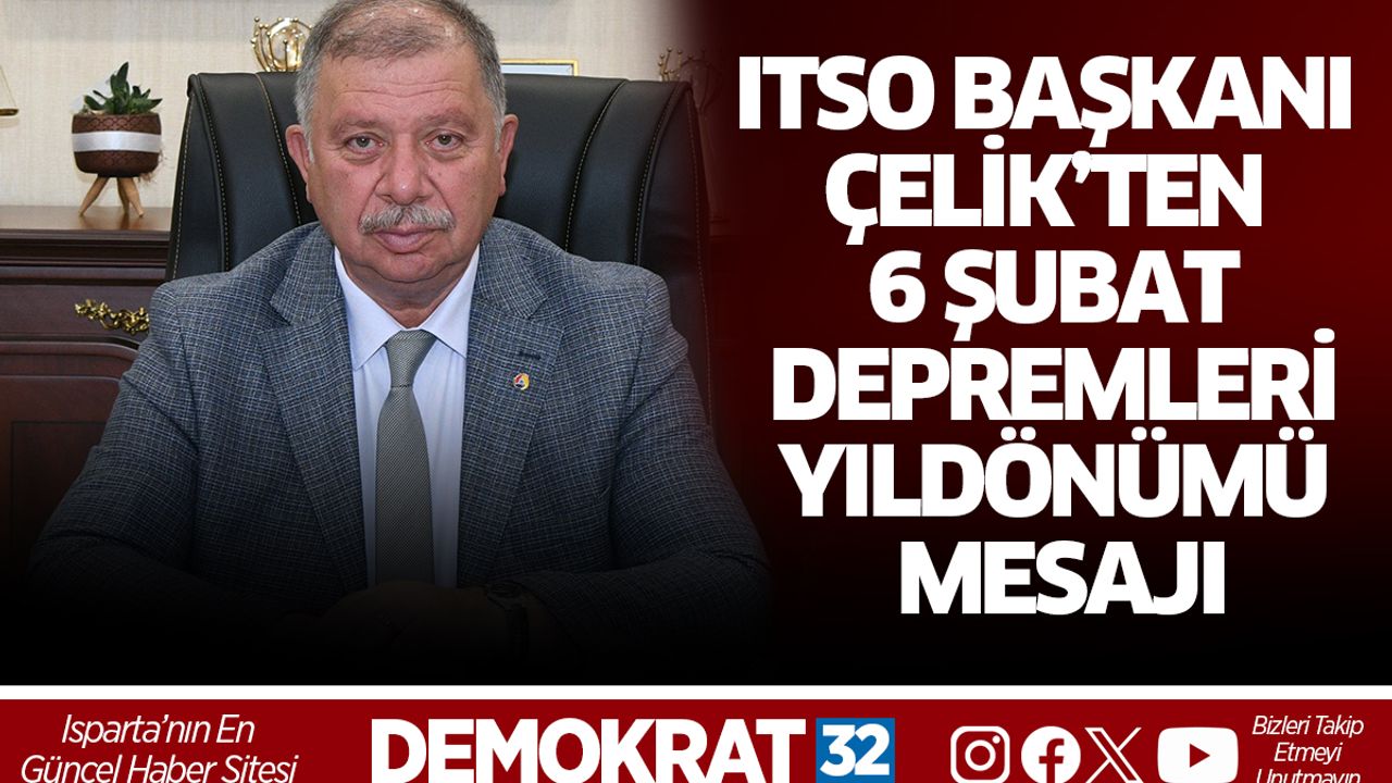 Isparta Ticaret ve Sanayi Odası (ITSO) Yönetim Kurulu Başkanı Metin Çelik, 6 Şubat 2023’te merkez üssü Kahramanmaraş olan ve birçok ilimizi etkileyen depremlerin yıldönümünde bir mesaj yayımladı. Başkan Çelik, mesajında yapı güvenliğine dikkat çekti.
