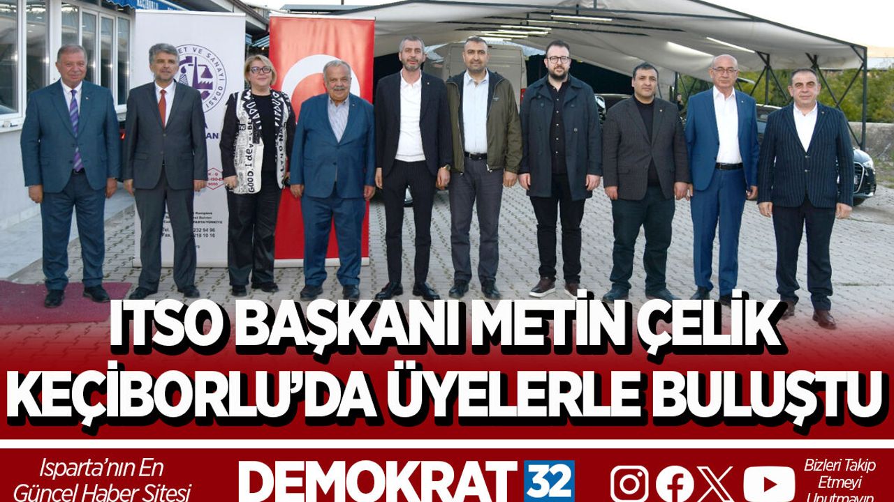 Isparta Ticaret ve Sanayi Odası (ITSO) Yönetim Kurulu Başkanı Metin Çelik, Keçiborlu ilçesinde faaliyet gösteren oda üyeleriyle istişare toplantısında bir araya geldi. Gerçekleştirilen toplantıda üyelerin talep, sorun ve önerileri kapsamlı şekilde ele alındı.