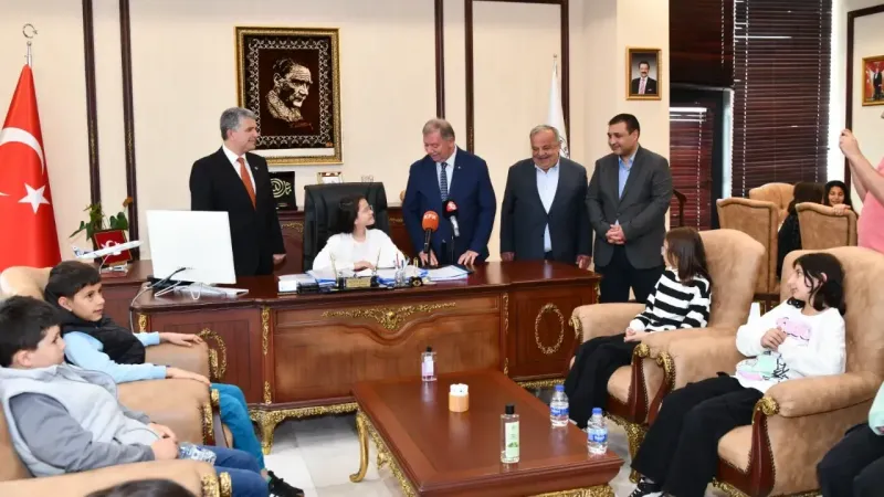 Başkanlık koltuğunu temsili olarak öğrenci Elasu Uysal’a devreden Başkan Çelik, “Bir gün bu koltuklara sizler geleceksiniz. Sizler geleceğin umudusunuz.” diyerek çocukların ülkenin geleceği açısından taşıdığı öneme vurgu yaptı.