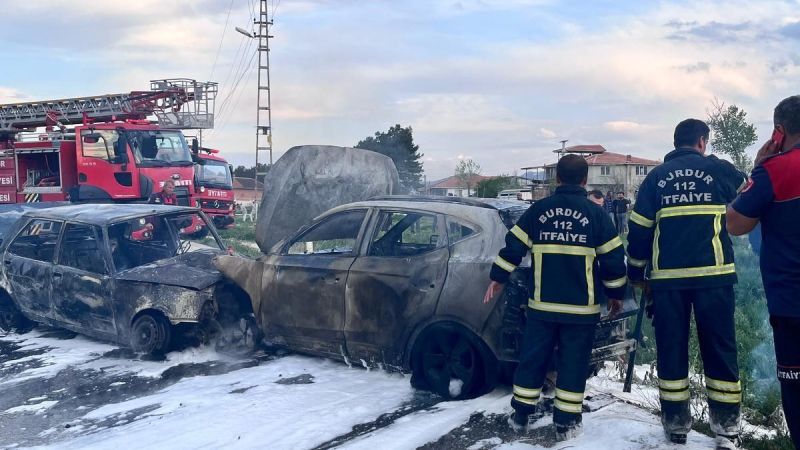 Burdur merkeze bağlı Yazıköy'de kafa kafaya çarpışan iki otomobi yanarken, kazada 1 kişi hayatını kaybetti, 4 kişi yaralandı.