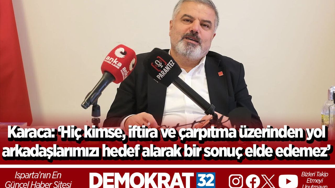 CHP Isparta İl Başkanı Hasan Karaca, AK Parti İl Başkanı Furkan Cem Er’in, Atabey Belediyesi’nin CHP’li meclis üyesi ve CHP Isparta Milletvekili Hikmet Yalım Halıcı’nın babası Necdet Halıcı, ile ilgili iddialarına cevap verdi. Karaca: “Hiç kimse, iftira ve çarpıtma üzerinden yol arkadaşlarımızı hedef alarak bir sonuç elde edemez. Bu anlayışın ne Atabey’de ne de Isparta’da bir karşılığı vardır” dedi.
