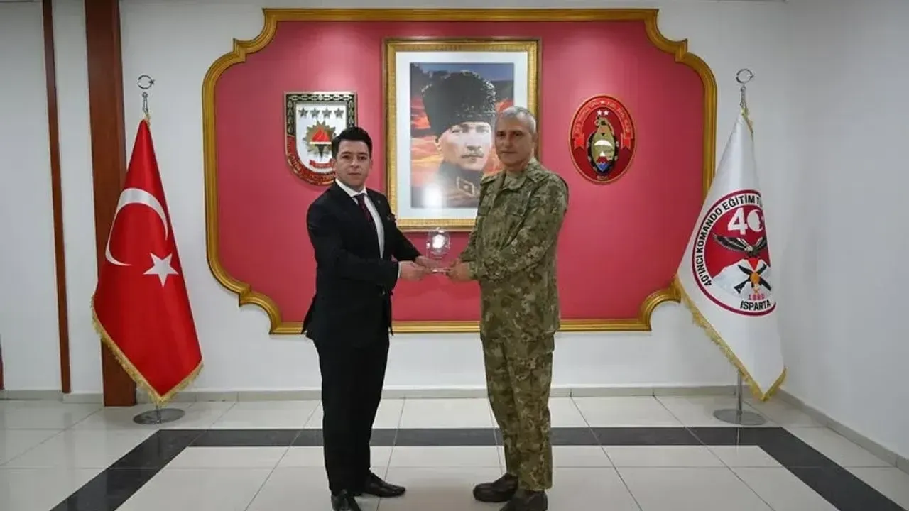 Aksu Kaymakamı Salih Zafer Aydın, Tuğgeneral Merdin Kışkan’ı makamında ziyaret etti. Aksu Kaymakamı Salih Zafer Aydın, Isparta 40. Komando Eğitim Tugay Komutanı Tuğgeneral Merdin Kışkan’ı makamında ziyaret etti. Gerçekleştirilen nezaket ziyaretinde, kurumlar arası iş birliği ve koordinasyon konularında görüş alışverişinde bulunuldu. Ziyaret, karşılıklı iyi dileklerin sunulmasının ardından hatıra fotoğrafı çekimiyle sona erdi.