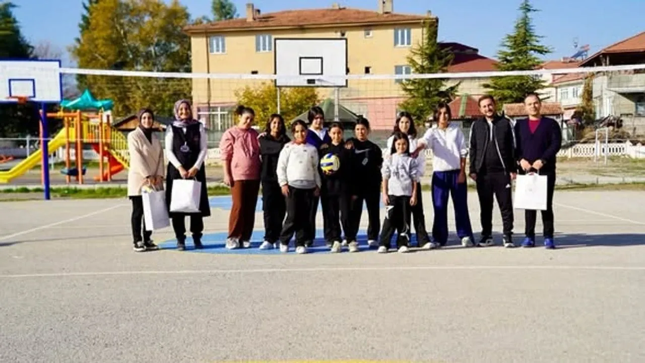 İl Müdürü Murat Çağrı Kaya’nın talimatıyla köy okuluna yeni voleybol filesi gönderilirken, öğrencilere bir de voleybol topu hediye edildi.