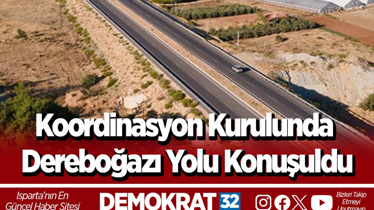 İl Koordinasyon Kurulu Toplantısına Başkanlık yapan Vali Yardımcısı Halil İbrahim Ertekin, Dereboğazı yolunda son dönemde yaşanan ölümlü kazalara dikkat çekerek, Isparta-Antalya kara yolunun duble yol haline getirilmesinin artık zorunluluk haline geldiğini vurguladı.