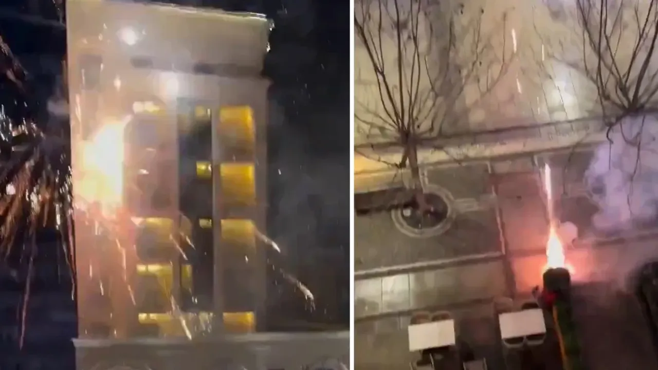 İşte Kosovalı taraftarların A Milli Takım'ın kaldığı otelin önündeki havai fişek saldırısı...