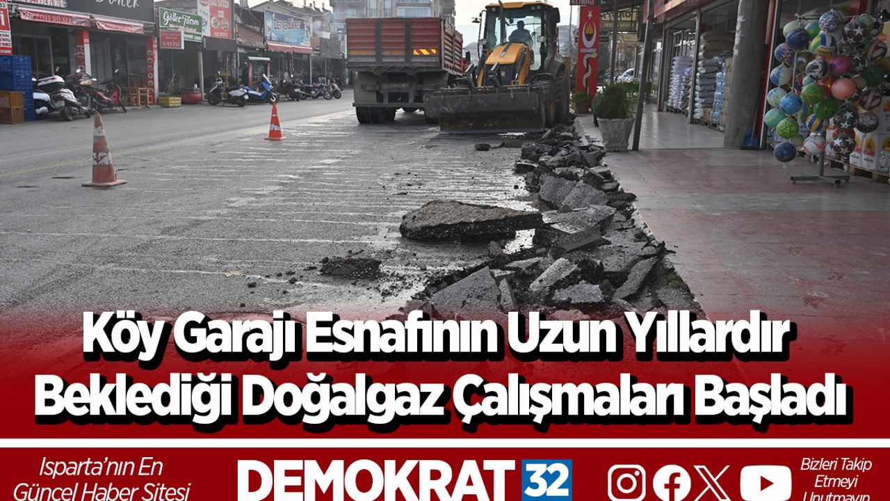 Doğalgazı bekleyen noktalardan biri de Isparta Köy Garajı esnafıydı. Isparta Belediye Başkanı Şükrü Başdeğirmen’in girişimleriyle köy garajı esnafının doğalgaz sorunu çözüldü. Doğalgazın işletmelere girmesi noktasında çalışmalar bugün başladı. Ekipler, doğalgaz boru hatlarının geçeceği alanda kazı çalışmaları yaptı.