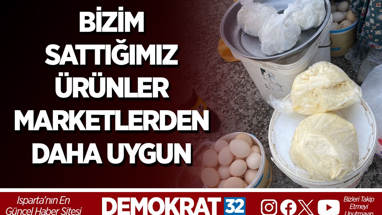 Isparta’nın en eski ve en hareketli pazarlarından biri olan Salı Pazarı, yine köylerinden ürün getirip tezgâh açan üreticilerle dolup taştı. O üreticilerden biri de Hasan Katmanlı. 25 yıldır hayvancılıkla uğraşan Katmanlı, eşi ve gelinleriyle birlikte ürettikleri süt ürünlerini pazarda satarak geçimini sağlıyor. “Bizim sattığımız ürünler marketten daha uygun” diyerek söze başlayan Katmanlı, tezgâhında yoğurt, peynir, tereyağı, yumurta ve pekmez gibi ürünleri sergiliyor. Her biri kendi hayvanlarının sütünden ve tamamen doğal yöntemlerle hazırlanıyor.