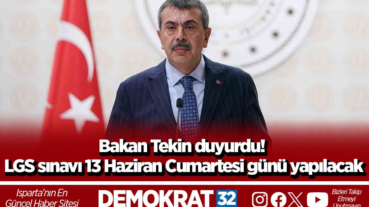 Milli Eğitim Bakanı Yusuf Tekin, Liselere Geçiş Sistemi (LGS) kapsamındaki merkezi sınavın, Dünya Kupası'ndaki milli maç sebebiyle 13 Haziran Cumartesi gününe alındığını bildirdi.