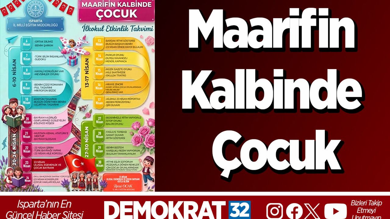 Milli Eğitim Bakanlığı’nın “Maarifin Kalbinde Çocuk” teması kapsamında hazırladığı etkinlik kitapçıkları doğrultusunda, Isparta İl Milli Eğitim Müdürlüğü tarafından ilkokul öğrencilerine yönelik Nisan ayı etkinlik takvimi oluşturuldu.