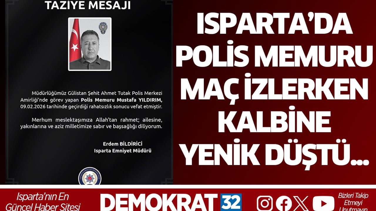 Isparta İl Emniyet Müdürlüğü kadrosunda görev yapan polis memuru Mustafa Yıldırım, geçirdiği kalp krizi sonucu yaşamını yitirdi.