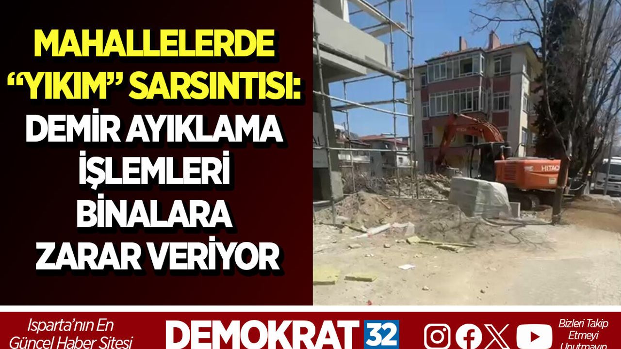 Isparta’da son dönemde artan bina yıkımları sonrası uygulanan moloz ve demir ayıklama işlemleri, mahalle sakinlerini tedirgin etmeye başladı. Yıkımın ardından hafriyat alanlarında yapılan sert darbeli işlemler nedeniyle çevredeki binalarda ciddi sarsıntılar meydana geldiği belirtiliyor.