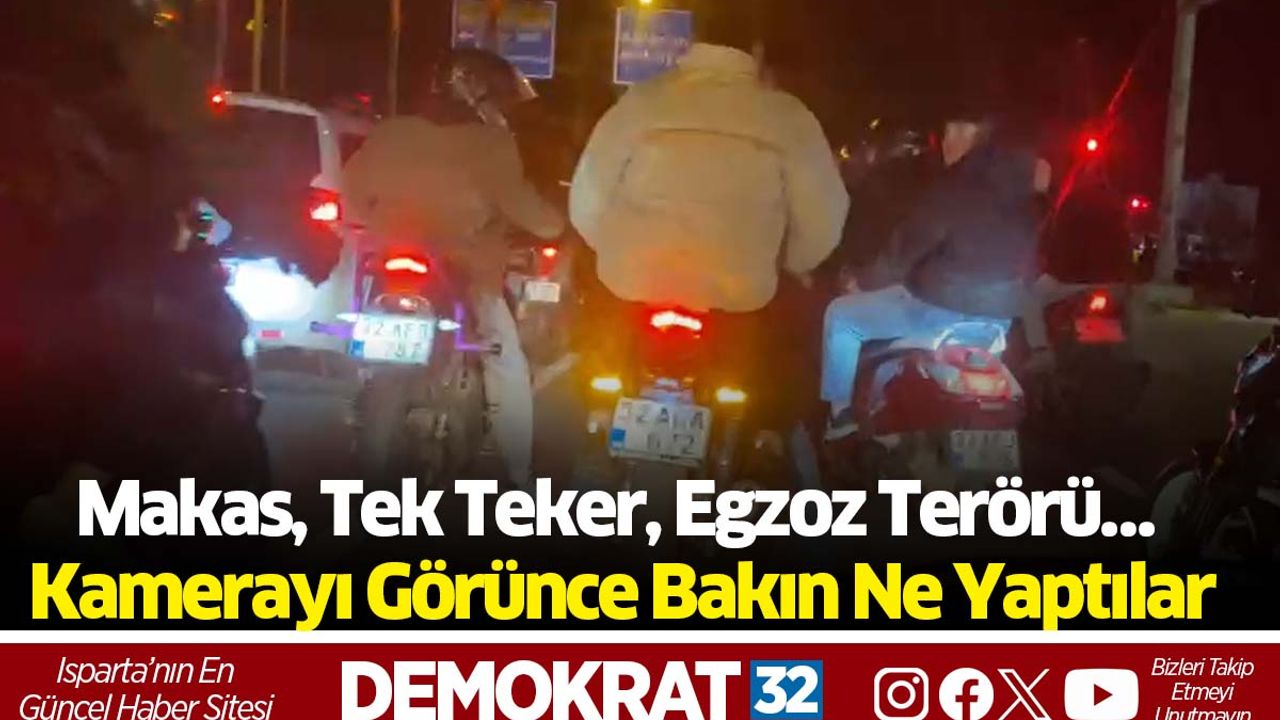 Yaklaşık 15 motosikletten oluşan grup, Antalya Yolu üzerinde seyir halindeyken makas atarak ve tek teker üzerinde giderek trafikteki diğer araçları tehlikeye attı. Can güvenliğini hiçe sayan sürücüler, Sav Beldesi yönüne doğru ilerlerken bu kez de trafik ışıklarında egzozlarını bilinçli şekilde bağırtarak, Ispartalı vatandaşların uzun süredir şikâyetçi olduğu egzoz gürültüsü terörünü bir kez daha yaşattı.