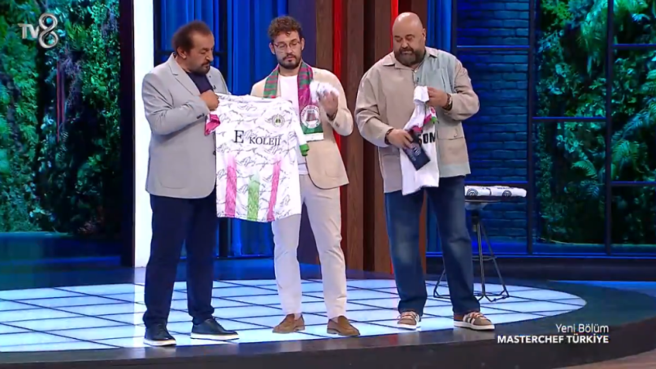 Masterchef'te yedeklerde yarışan Ispartalı Alperen Kurnaz, program sunucuları Mehmet Yalçınkaya, Somer Sivrioğlu ve Danilo Zanna'ya imzalı Ispartaspor forması ve atkısı hediye etti.