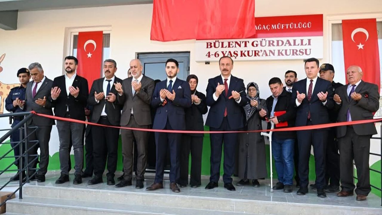 2015 yılında merhum hayırsever Duran Çevik’in bağışladığı 680 metrekare arsa üzerine inşa edilen Kuran kurslarının açılışına Vali Abdullah Erin, İl Müftüsü Muharrem Biçer, ilçe protokolü, merhum Bülent Gürdallı’nın ailesi ve ilçe halkı katıldı.