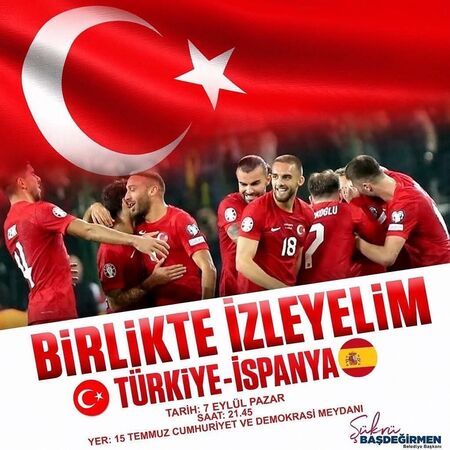 A Milli Futbol Takımımız 2026 FİFA Dünya Kupası Elememeleri Grup ikinci maçında kendi sahasında İspanya’yı ağırlayacak. Türkiye-İspanya maçı 7 Eylül Pazar günü saat 21.45’de oynanacak. Grup liderliğini yakından ilgilendiren A Milli Futbol Takımımızın bu önemli maçı için Isparta Belediyesi, ilk maçta olduğu gibi 15 Temmuz Cumhuriyet ve Demokrasi Meydanı’na dev ekran kuracak. Sporseverler omuz omuza hep birlikte milli heyecanı açık havada dev ekrana yaşayacak. Belediye Başkanı Şükrü Başdeğirmen, tüm vatandaşları maçı birlikte izlemeye davet etti. Başkan Başdeğirmen, “Millî takımımızın İspanya ile oynayacağı karşılaşmayı birlikte izlemek, bu heyecana hep birlikte ortak olmak amacıyla tüm hemşehrilerimi 7 Eylül Pazar günü saat 21.45’de 15 Temmuz Cumhuriyet ve Demokrasi Meydanı’na davet ediyorum. Ay yıldızlı formamızla sahaya çıkacak milli futbolcularımıza destek olmak ve şehrimizde birlik, beraberlik duygusunu pekiştirmek adına tüm halkımızı bu anlamlı buluşmaya bekliyoruz” ifadelerini kullandı.