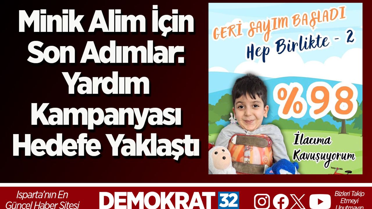 Isparta’da 4,5 yaşındaki SMA Tip 1 hastası Alim Asaf için başlatılan yardım kampanyası, büyük destekle hedefe son adımları atıyor. Kaymakkapı Meydanı’ndaki kermes ve bağışlarla kampanya artık yüzde 98’e ulaştı.