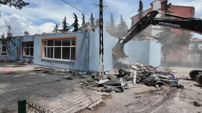 Davraz Mahallesi’ndeki İstiklal Anaokulunun yıkımı gerçekleştirilirken, yerine 8 derslikli modern bir anaokulu inşa edilecek.