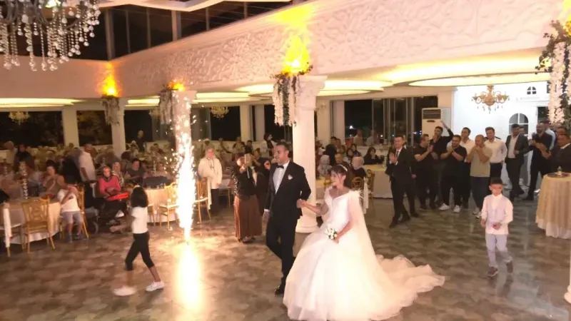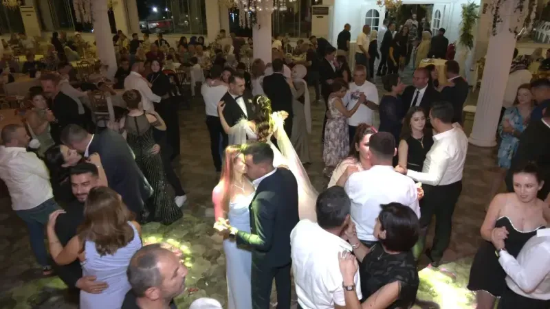 Genç çiftleri bu mutlu gününde sevenleri yalnız bırakmadı ve çok sayıda davetli katıldı. Gecenin ilk dansını çiçeği burnunda çift yaptı.