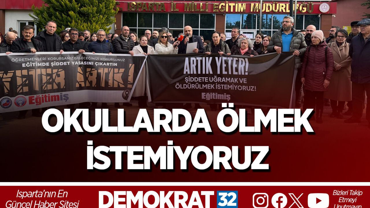 Türkiye’yi sarsan okul saldırısının ardından tepkiler büyüyor. İstanbul’un Çekmeköy ilçesinde bir öğretmenin hayatını kaybetmesi üzerine Eğitim-İş Isparta Şubesi üyeleri, Milli Eğitim Müdürlüğü önünde basın açıklaması düzenledi. Kalabalık bir grup eğitim emekçisinin katıldığı açıklamada, okullardaki güvenlik zafiyetine dikkat çekildi ve yetkililere çağrıda bulunuldu.