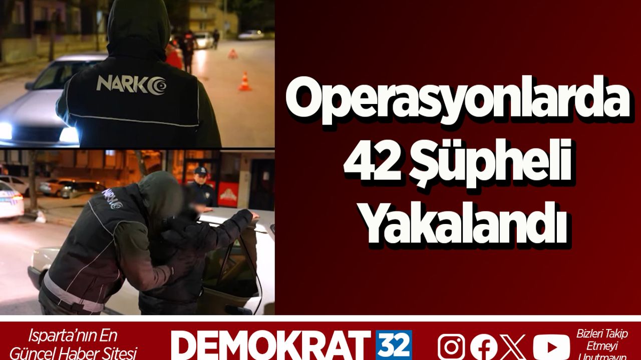 Isparta'da düzenlenen uyuşturucu operasyonlarında 42 şüpheli hakkında adli işlem başlatıldı.