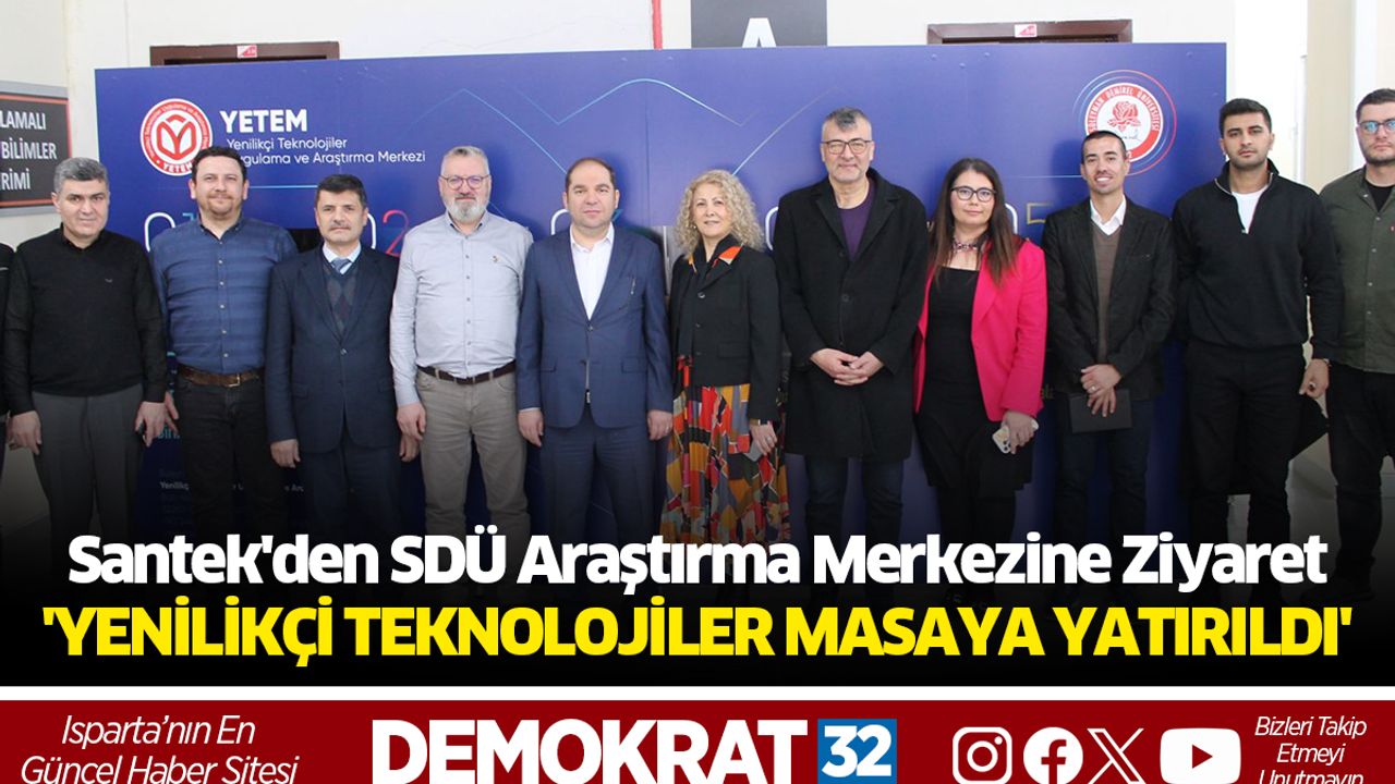 Isparta SANTEK (Sanayi ve Teknoloji İşbirliği Kurulu) tarafından SDÜ YETEM (Yenilikçi Teknolojiler Uygulama ve Araştırma Merkezi), SUDUM (Doğal Ürünler Araştırma ve Uygulama Merkezi) ve Göller Bölgesi Teknokenti Ön Kuluçka Merkezi’ne ziyaretler yapıldı.