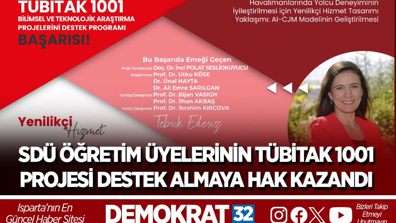 Süleyman Demirel Üniversitesi öğretim üyeleri TÜBİTAK 1001 - Bilimsel ve Teknolojik Araştırma Projelerini Destekleme Programı 2025 yılı 2. Dönem değerlendirmeleri kapsamında destek almaya hak kazandı. Proje yürütücülüğünü Doç. Dr. İnci Polat Sesliokuyucu’nun üstlendiği, “Havalimanlarında Yolcu Deneyiminin İyileştirilmesi için Yenilikçi Hizmet Tasarımı Yaklaşımı: AI-CJM Modelinin Geliştirilmesi” başlıklı proje kapsamında; doğal dil işleme, derin öğrenme ve büyük ölçekli veri analitiği tekniklerini entegre eden yapay zekâ destekli bir müşteri yolculuğu haritalama (AI-CJM) modelinin geliştirilmesi hedefleniyor. Geliştirilecek bu yenilikçi model ile havalimanı hizmet ekosistemindeki temas noktalarının dinamik olarak analiz edilmesi, paydaş bazlı değer yaratımının nicel olarak modellenmesi ve veri temelli deneyim optimizasyonuna yönelik ölçeklenebilir bir karar destek çerçevesinin oluşturulması amaçlanıyor.