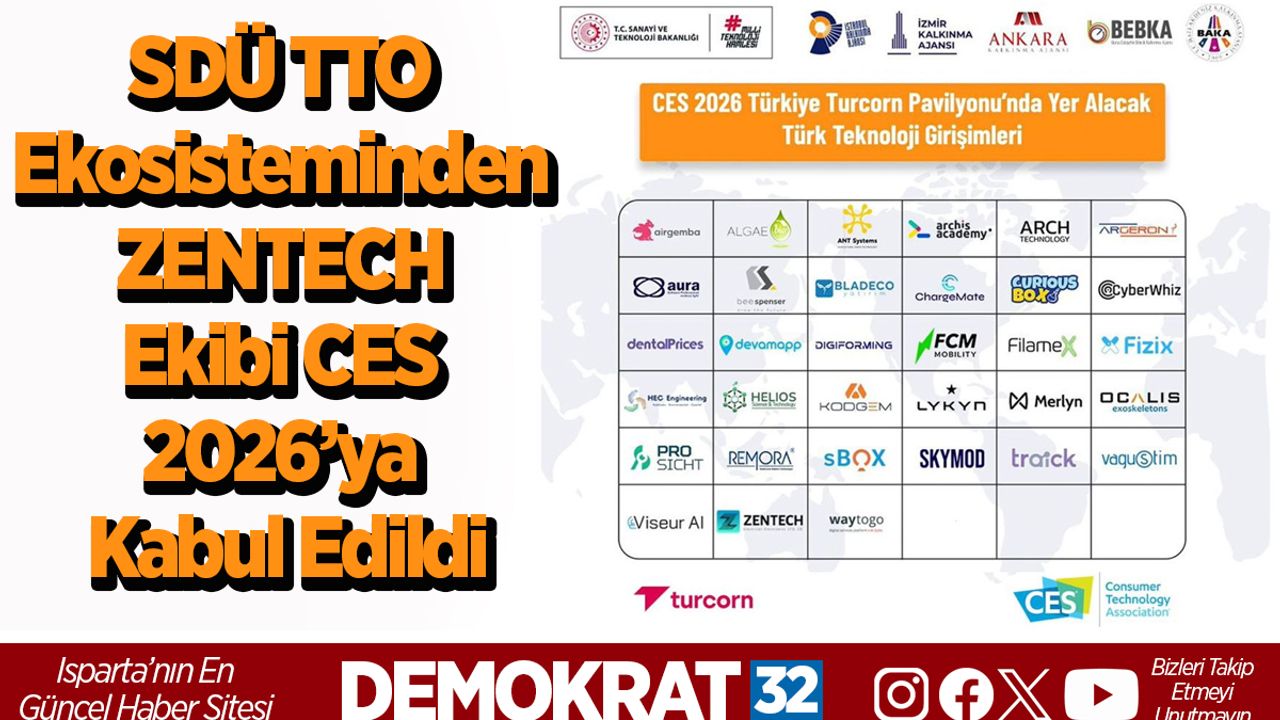 Süleyman Demirel Üniversitesi Teknoloji Transfer Ofisi (TTO) girişimcilik ekosisteminde gelişimini sürdüren, Göller Bölgesi Teknokenti bünyesinde faaliyet gösteren ve TÜBİTAK BiGG Programı mezunu olan ZENTECH ekibi, teknoloji ve inovasyon etkinliklerinden biri olan CES 2026’ya katılmaya hak kazandı.