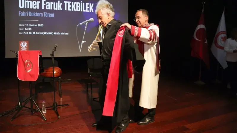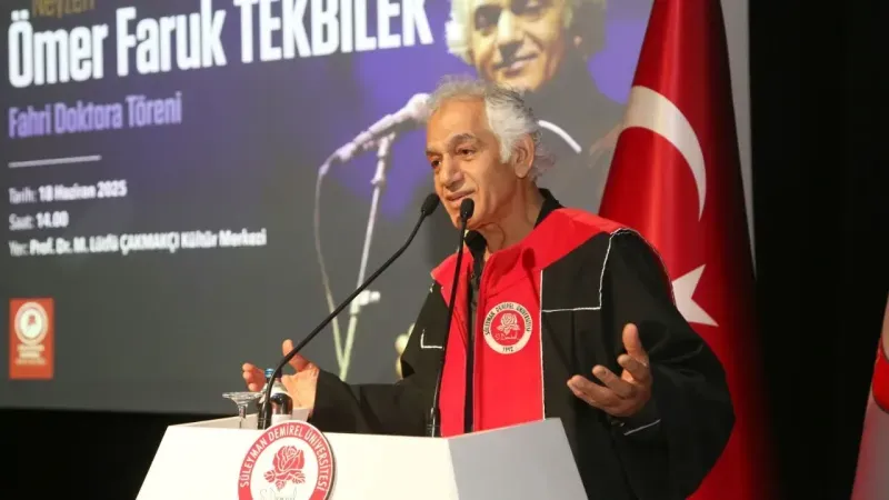 Rektör Prof. Dr. Saltan, “Sayın Tekbilek, yalnızca müzik alanında değil, taşıdığı ahlaki ve kültürel değerlerle de örnek teşkil eden bir şahsiyettir. Anadolu’nun kadim seslerini, evrensel ölçekte temsil etme çabası ve müzikte sadeliği bir felsefeye dönüştürmesiyle sanatını bir irade ve kültür taşıyıcılığına dönüştürmüştür. Bugün kendisine tevdi ettiğimiz fahri doktora payesi, bu derin saygının bir ifadesidir.” dedi.