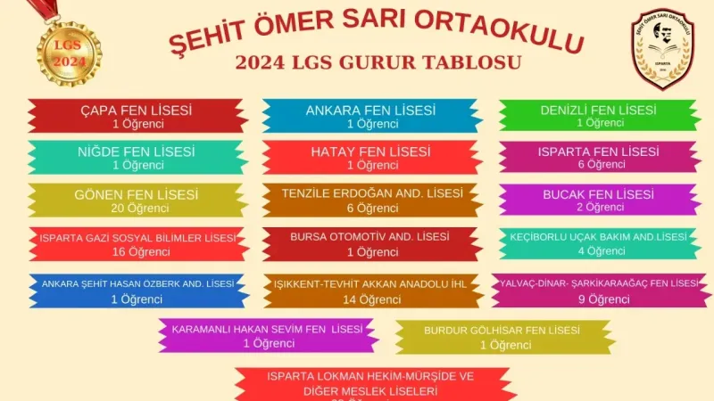 Isparta’nın parlayan yeni yüzü Şehit Ömer Sari Ortaokulunda nitelikli okul kazanan öğrenci sayısı göz dolduruyor.