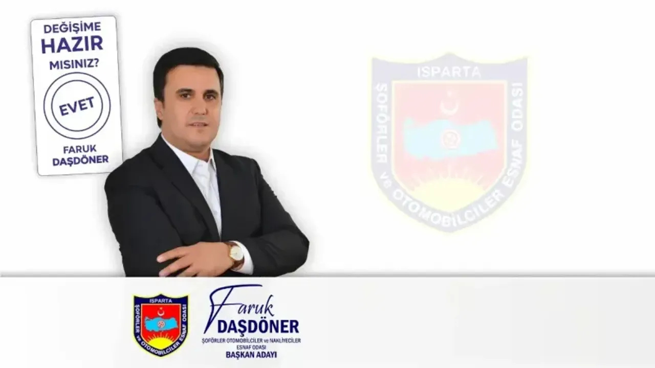 Isparta Şoförler, Otomobilciler ve Nakliyeciler Odası Başkanlığına aday olan Özel Halk Otobüsleri Kooperatifi Başkanı Faruk Daşdöner, şoför esnafının yıllardır beklediği hizmetleri hayata geçirmek için yola çıktıklarını söyledi. Kamyoncu bir babanın oğlu olarak, sahadan gelen biri olduğunu vurgulayan Daşdöner, “Bu işi mutfağında öğrendik, şimdi vizyonla birleştirip Türkiye’ye örnek bir oda inşa edeceğiz” dedi.