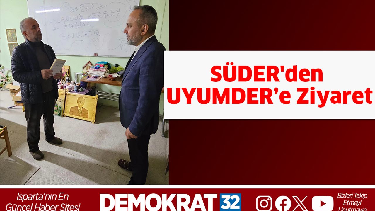 Isparta Sütçülerliler Sosyal Yardımlaşma ve Kültür Derneği (SÜDER) Başkanı Arif Günay ve yönetim kurulu üyeleri, Eğirdir karayolunda faaliyet gösteren Uyuşturucu Bağımlılıkları ve Alkolizm ile Mücadele Derneği (UYUMDER)’i ziyaret etti. Dernek çalışmalarını yerinde incelemek, yürütülen projeler hakkında bilgi almak ve iki dernek arasındaki iş birliğini güçlendirmek amacıyla gerçekleştirilen ziyaretin oldukça verimli geçtiği belirtildi.