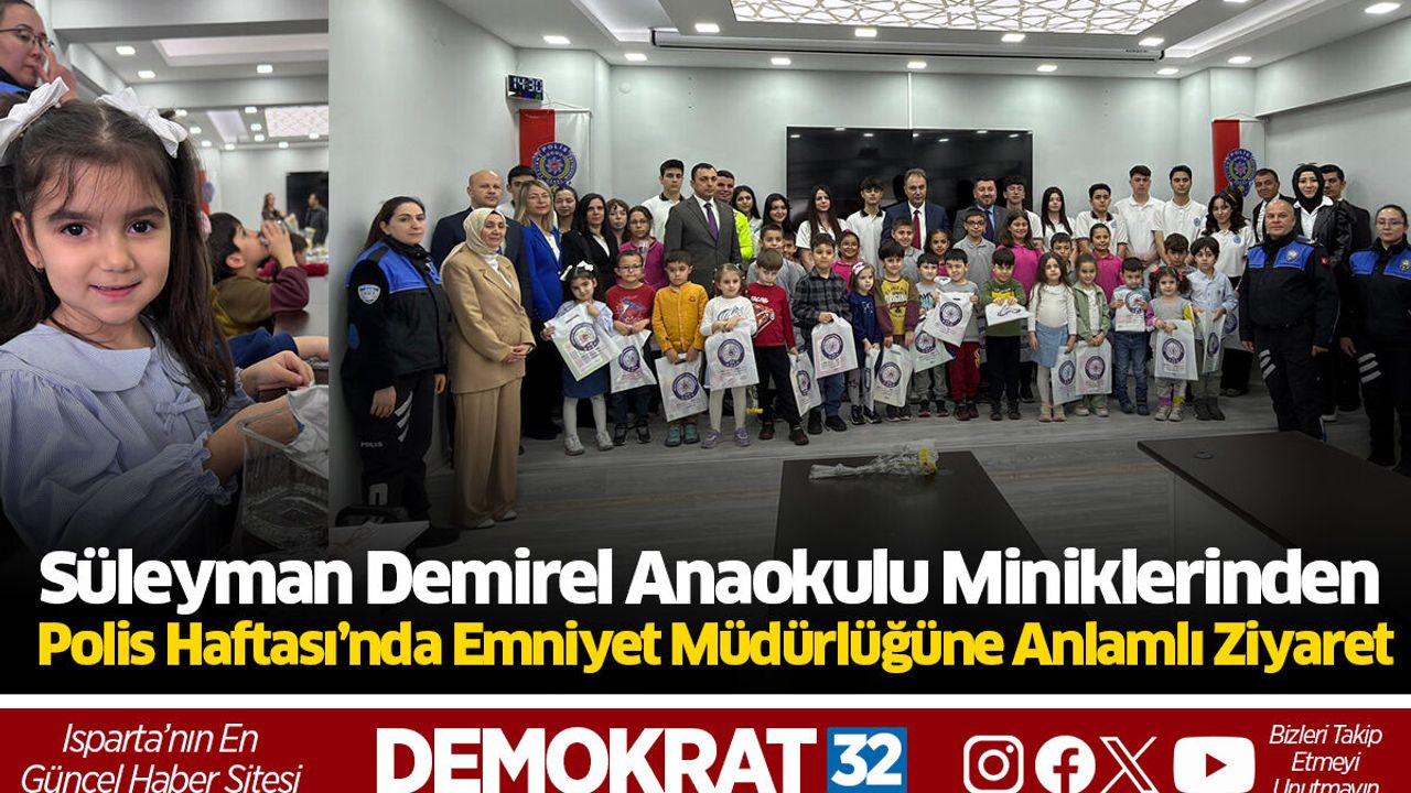 6-12 Nisan Polis Haftası kapsamında Isparta Süleyman Demirel Anaokulu öğrencileri, Isparta İl Emniyet Müdürlüğü’nü ziyaret etti. Polislerin haftasını kutlayan minikler, emniyet personeli tarafından sıcak ve samimi bir şekilde karşılandı.