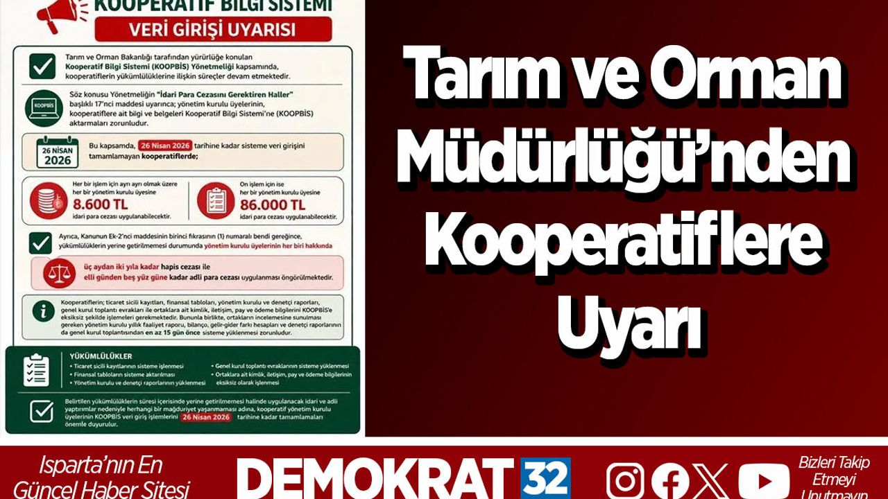 Isparta İl Tarım ve Orman Müdürlüğü, kooperatif yönetim kurullarına yönelik son derece önemli bir uyarıda bulundu.