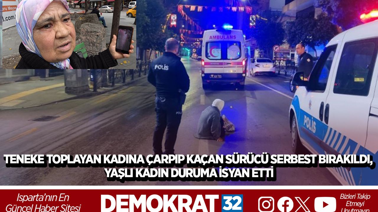 Isparta'da teneke toplayarak geçimini sağlayan 66 yaşındaki kadın, yolun karşısına geçmeye çalışırken bir otomobilin çarpması sonucu yaralandı. Kaza sonrası yakalanan sürücü ifadesi alınarak serbest bırakılırken, yaşlı kadın sürücünün serbest bırakılmasına tepki gösterdi.