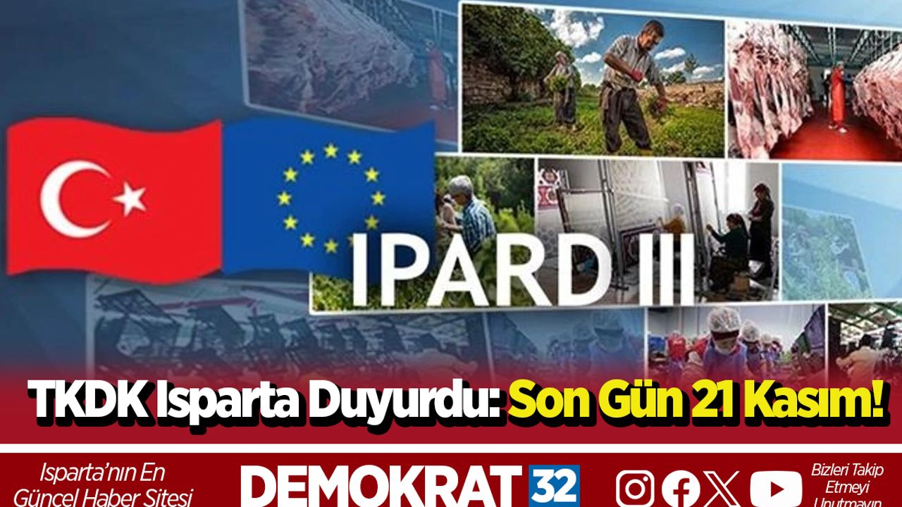 TKDK Isparta İl Koordinatörlüğü, sosyal medya hesabı üzerinden yaptığı paylaşımda IPARD III Programına ait 9.Başvuru Çağrı İlanı kapsamında “M1 – Tarımsal İşletmelerin Fiziki Varlıklarına Yönelik Yatırımlar” tedbiri için başvuru paketi son teslim tarihinin revize edildiğini açıkladı. Başvuru paketi için yeni tarih 21 Kasım 2025 saat 21.00 olarak revize edildi.