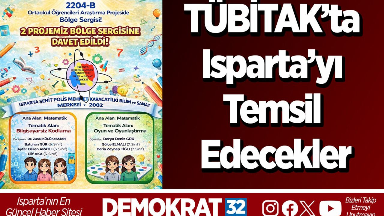 Isparta Şehit Polis Mehmet Karacatilki Bilim ve Sanat Merkezi öğrencileri, TÜBİTAK 2204-B Ortaokul Öğrencileri Araştırma Projeleri Yarışması kapsamında önemli bir başarıya imza attı. Merkezde hazırlanan iki proje, yarışmanın bölge sergisine davet edilerek Isparta’yı temsil etme hakkı kazandı.