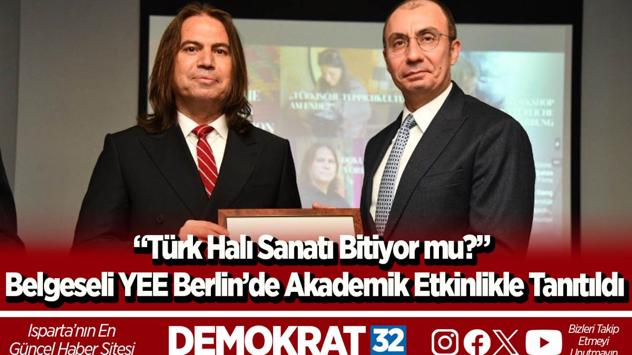 Süleyman Demirel Üniversitesi Güzel Sanatlar Fakültesi Dekanı Prof. Dr. Mustafa Genç’in danışmanlığında, Nuray Şahin’in yönetmenliğinde hazırlanan Türkiye–Fransa–Almanya ortak yapımı “Türk Halı Sanatı Bitiyor mu?” adlı belgesel, Yunus Emre Enstitüsü (YEE) Berlin Merkezi’nde düzenlenen akademik etkinlik kapsamında izleyiciyle buluştu.