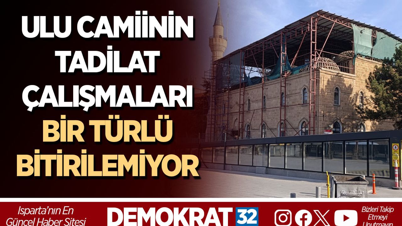 Ulu Camii, Isparta'nın en eski camilerinden biri olup, 1429 yılında inşa edilmiştir. Zaman içinde çeşitli tamiratlar geçiren cami, 1922 yılında yeniden yapılmıştır. Devam eden restorasyon çalışmaları, caminin tarihi dokusunu koruyarak geleceğe taşımayı amaçlıyor. Pandemi döneminden önce de bir dönem tadilata giren camii, pandemiden sonra da tadilata alınmıştı. Zaman zaman yüklenici firma tarafından durdurulan inşaat çalışmalarının akıbeti ise merak konusu oldu. 13 Milyon 560 Bin TL bedelle ihale edilen camii inşaatının, 23 Şubat 2025 tarihine yetiştirilmesi planlanıyordu. Ancak aradan geçen zaman diliminde tadilat çalışmaları ne yazık ki bitirilemedi.
