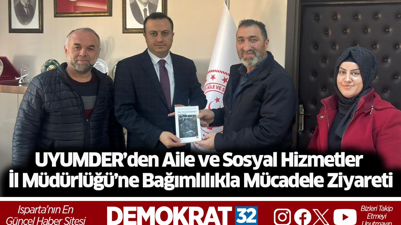 Alkolizm ile Mücadele Derneği (UYUMDER) Başkanı İbrahim Uzunköprü ve yardımcısı Yaşar Erbil, dernek yönetimiyle birlikte Isparta Aile ve Sosyal Hizmetler İl Müdürü Selim Köse’yi makamında ziyaret etti.