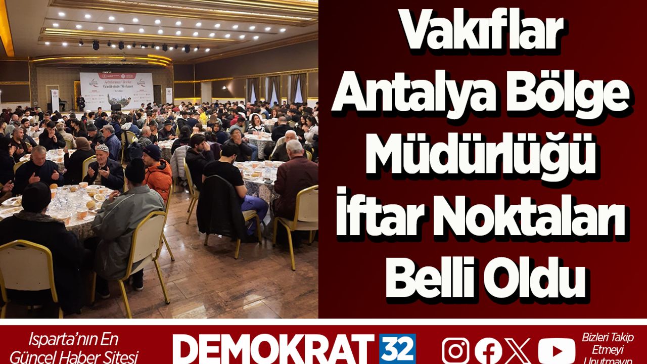 Vakıflar Genel Müdürlüğü, "Asırları Aşan Hayır Bu Sofrada" temasıyla Türkiye'nin 25 bölgesinde faaliyet gösteren Vakıflar Bölge Müdürlükleri aracılığıyla Ramazan ayı boyunca birçok noktada vatandaşlara ücretsiz iftar yemeği imkanı sunacak. Bu kapsamda Ramazan ayının manevi atmosferini paylaşmak ve dayanışma ruhunu güçlendirmek amacıyla, Antalya Bölge Müdürlüğü bölgesine bağlı olan Antalya’nın yanı sıra Isparta ve Burdur illerinde Ramazan ayı boyunca devam ettireceği organizasyonla binlerce ihtiyaç sahibini iftar sofrasında misafir edecek.