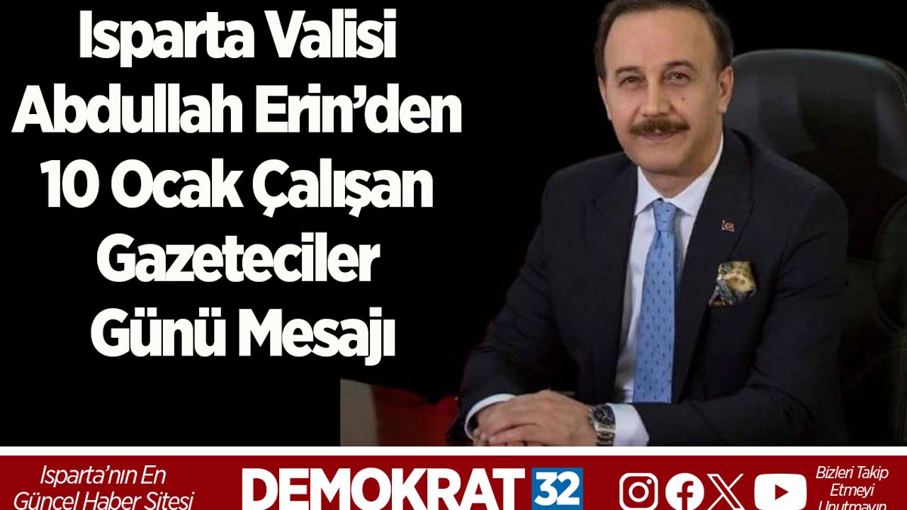Isparta Valisi Abdullah Erin, 10 Ocak Çalışan Gazeteciler Günü dolayısıyla yayımladığı mesajda, basın emekçilerinin fedakâr çalışmalarına dikkat çekti ve görevleri başında hayatını kaybedenlere rahmet diledi.