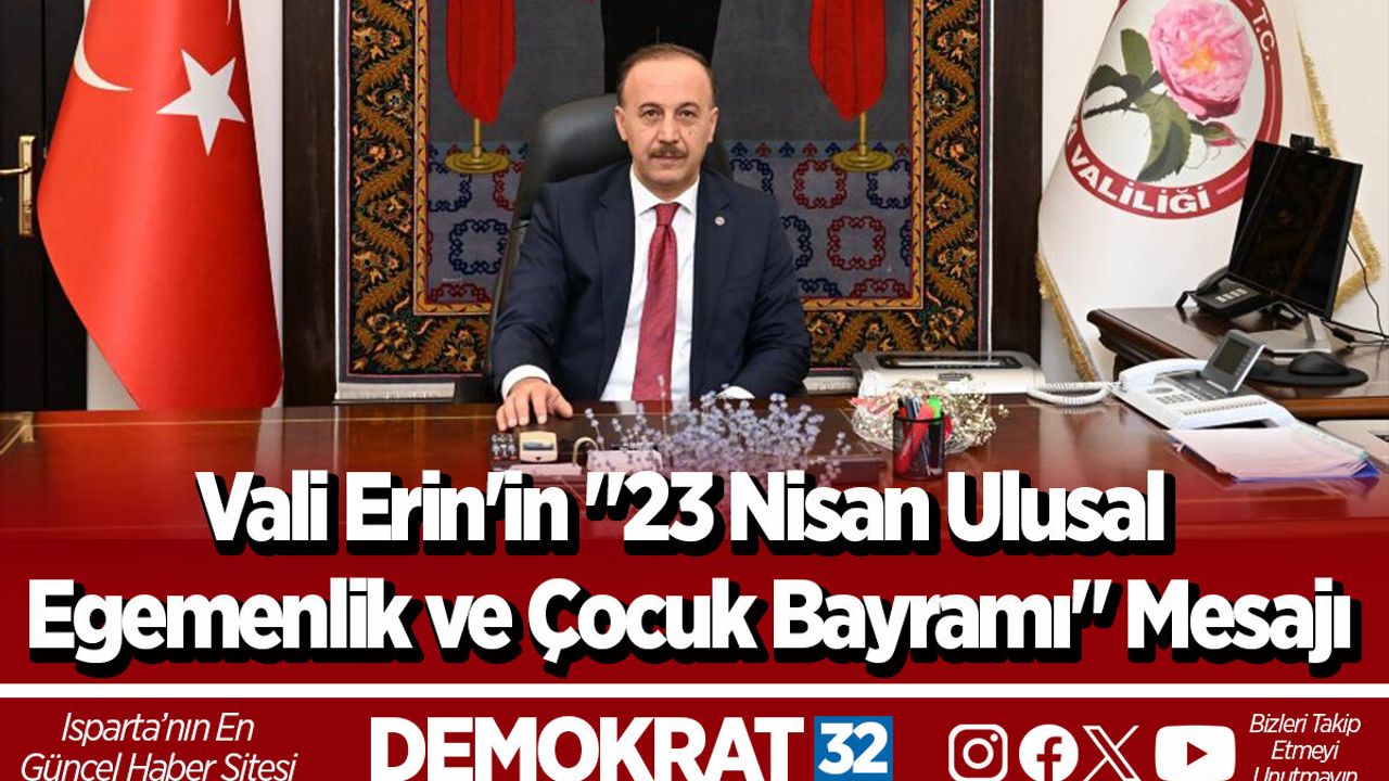 Vali Erin mesajının devamında şu ifadelere yer verdi: “23 Nisan Ulusal Egemenlik ve Çocuk Bayramı; dünya çocuklarının katılımıyla kutlanan, barış ve kardeşlik gibi yüce değerlerin içtenlikle paylaşılmasına, dünyaya yayılmasına, farklı kültürlerin buluşmasına ve kaynaşmasına vesile olan; çocuklara armağan edilmiş, dünyadaki tek bayram olma özelliğini taşımaktadır. Türkiye Büyük Millet Meclisinin ilk Başkanı Gazi Mustafa Kemal Atatürk tarafından, geleceğimizin teminatı olan çocuklarımıza ve dünya çocuklarına bayram olarak armağan edilen bu anlamlı gün; aziz milletimizin gelecek nesillere verdiği değeri ve onlara duyduğu güveni en güçlü şekilde ortaya koymaktadır. Çocuklarımızın gözlerindeki ışık ve yüreklerinde taşıdıkları umut, ülkemizin yarınlarına dair bizlere güç vermektedir. Çocuklarımızın umutlarının yeşertilmesi, millî ve manevi değerlerine bağlı, vizyon sahibi nesiller olarak yetişmeleri hepimizin ortak sorumluluğudur. Bu sorumluluk aynı zamanda, vatanımızı bizlere emanet eden aziz şehitlerimize ve kahraman gazilerimize olan vefa borcumuzun da bir gereğidir. Bu anlamlı günde, Cumhuriyetimizin kurucusu Gazi Mustafa Kemal Atatürk’ü ve İstiklal Savaşı’mızın tüm kahramanlarını saygı, minnet ve şükranla anıyor; sevgi dolu yürekleri ve gülen yüzleriyle bugüne anlam katan çocuklarımızın ve aziz milletimizin 23 Nisan Ulusal Egemenlik ve Çocuk Bayramı’nı en içten dileklerimle kutluyorum” dedi.