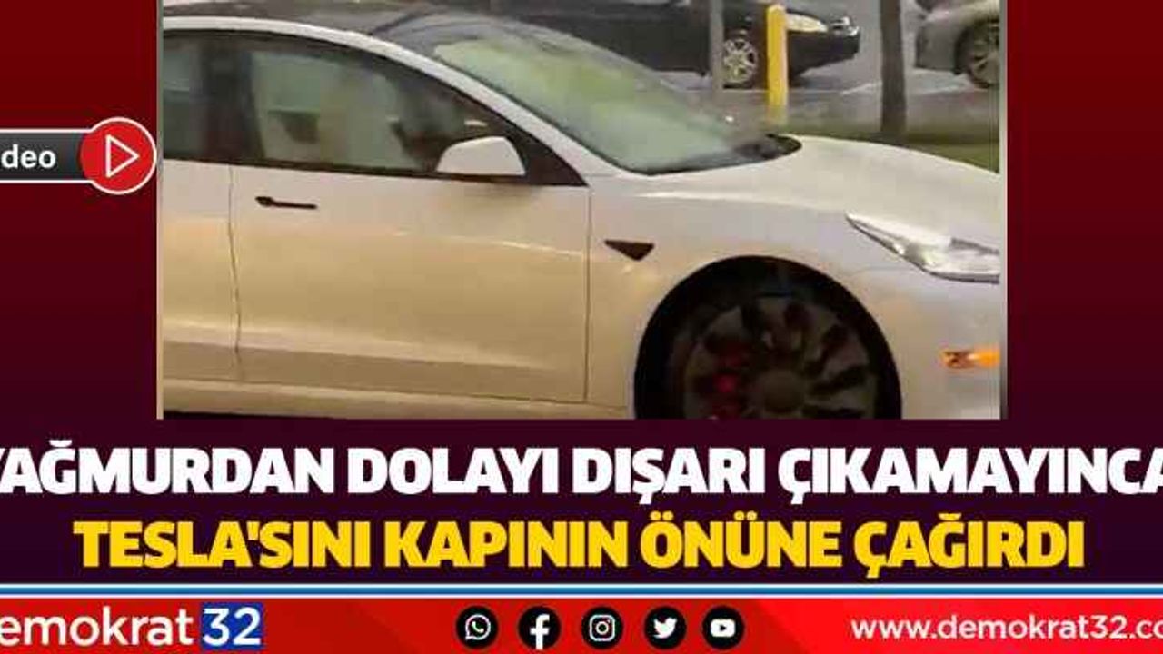Yağmurdan dolayı aracının yanına yürüyemeyen bir kişi, Tesla otomobilin 'akıllı...