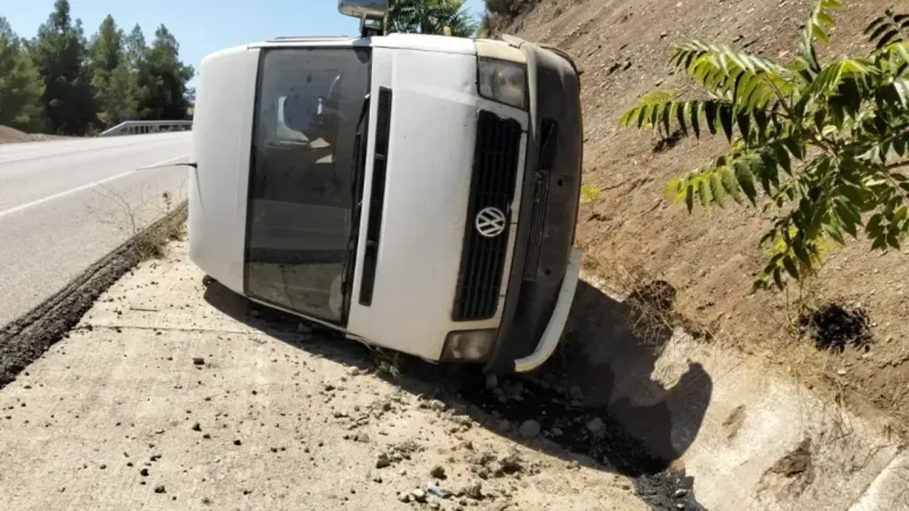 Viraja hızlı giren minibüs şarampole devrildi: 1 yaralı