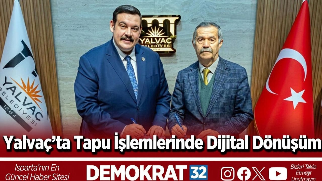 Yalvaç Belediyesi ile Yalvaç Tapu Müdürlüğü arasında, tapu işlemlerini hızlandıracak iş birliği protokolü imzalandı. Yalvaç Belediye Başkanı Mustafa Kodal ile Tapu Müdürü Recep Keleş tarafından imzalanan protokol kapsamında, tapu işlemlerinde talep edilen emlak beyan değerleri artık elektronik ortamda paylaşılabilecek. Böylece vatandaşların belge taşıma zorunluluğu ortadan kalkacak, işlemler daha hızlı ve etkin şekilde yürütülecek. Başkan Mustafa Kodal, dijitalleşmenin tüm imkânlarını ilçe için seferber ettiklerini belirterek, “Hemşehrilerimizin hayatını kolaylaştırmak ve hizmetlerimize hız katmak için çalışmalarımızı sürdürüyoruz. Bu protokolle işlem yoğunluğunu azaltarak vatandaşlarımızın zaman kaybı yaşamadan daha konforlu hizmet almasını sağlayacağız” dedi. Mustafa Kodal, katkılarından dolayı Tapu Müdürü Recep Keleş ve emeği geçenlere teşekkür ederek, ilçede hizmet kalitesini artırmaya yönelik çalışmaların süreceğini kaydetti.
