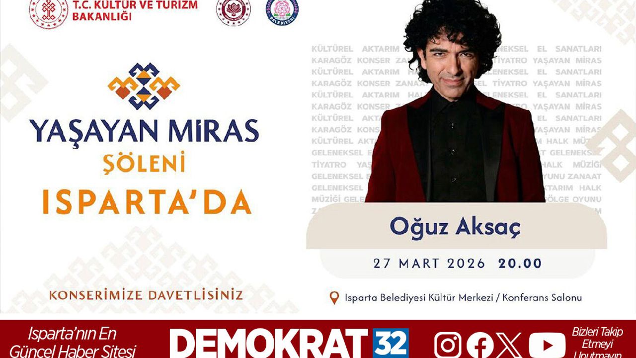 Kültür ve Turizm Bakanlığının katkılarıyla, Isparta Valiliği, Isparta Belediyesi ile Mustafa Baştan Kültür ve Sanat Derneği iş birliğinde düzenlenen “Isparta Yaşayan Miras Şöleni”, 27-29 Mart 2026 tarihleri arasında farklı şehirlerden gelen Somut Olmayan Kültürel Miras Taşıyıcılarına ve sanatseverlere ev sahipliği yapacak.