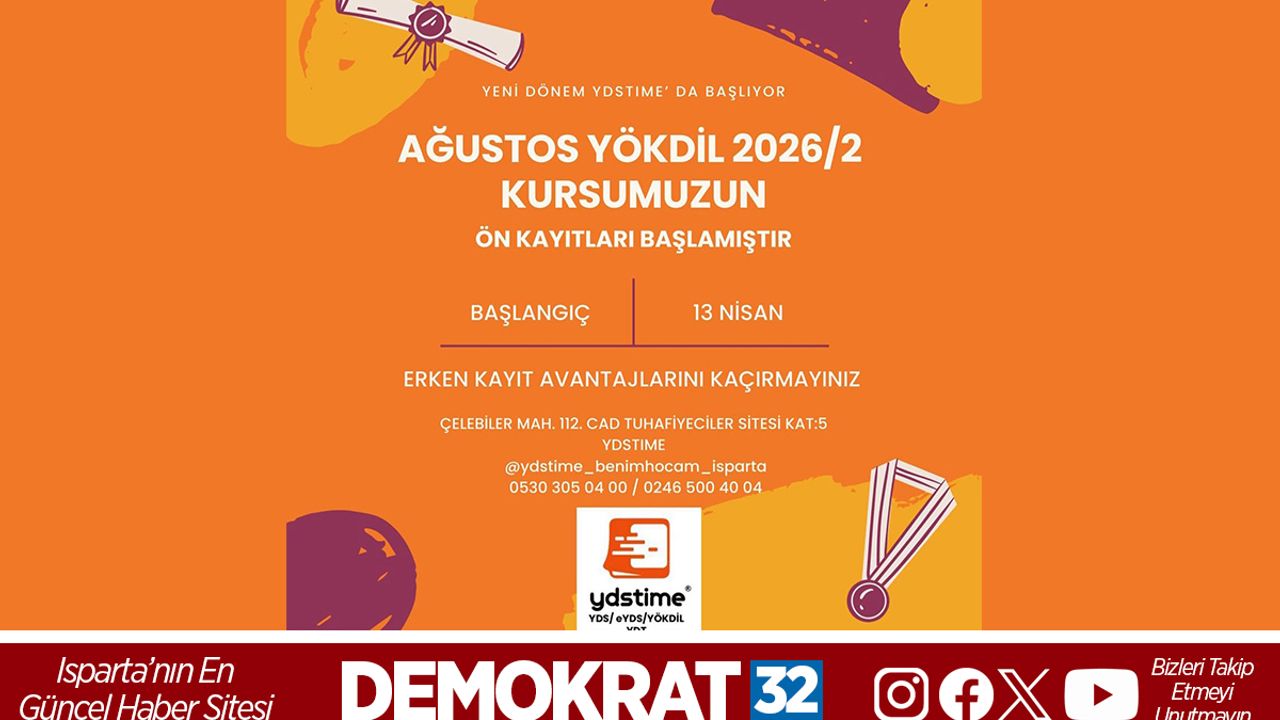 Isparta’da yabancı dil sınavlarına hazırlık alanında faaliyet gösteren YDSTime, Ağustos YÖKDİL 2026/2 kursu için ön kayıt sürecini başlattı. Yeni dönem hazırlık programının başlangıç tarihi 13 Nisan olarak duyuruldu.